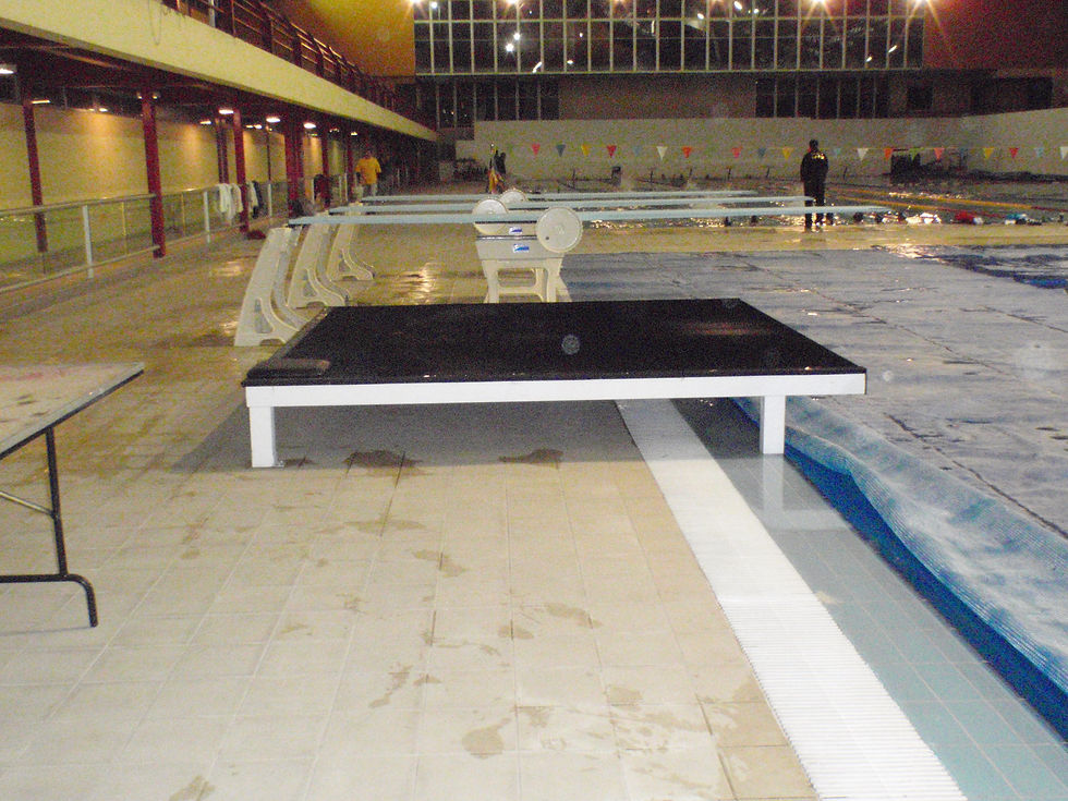 Estructura armada desmontable sobre nivel de piso para fosa de clavados